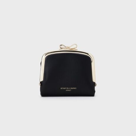 りぼんの金具と丸みを帯びたフォルムが、クラシックな雰囲気の2つ折り財布
