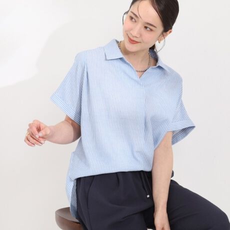 レーヨンのなめらかな肌触りとリネンの清涼感に加え、ハリ感と落ち感があり、着心地の良い素材です。
