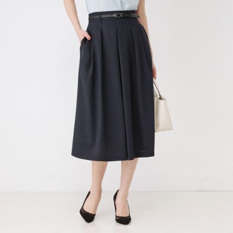フレア分量はありつつも、縦長に足長効果のあるシックなデザインのスタイルアップスカートです。