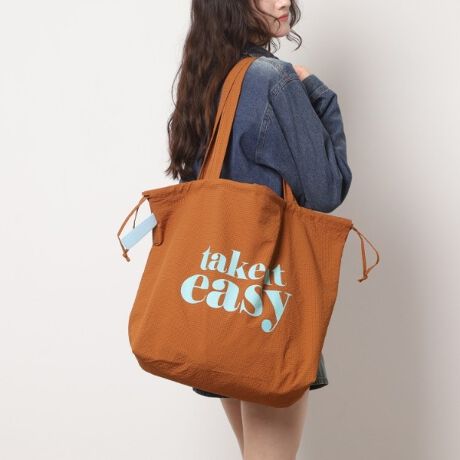 大き目サイズのざっくりコロンとした形がかわいい巾着トートバッグ