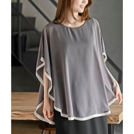 ふちどり配色シフォンバタフライブラウス