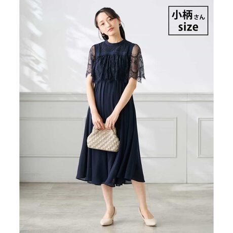 定番人気のシフォンジョーゼット素材にレースをドッキングしたお呼ばれワンピースです。