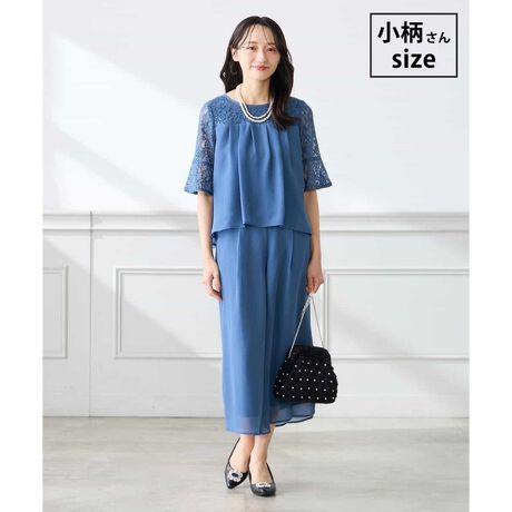 繊細なレースがドッキングされたブラウスとワイドパンツのセットアップアイテムです。