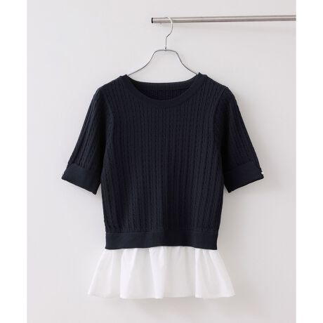 引きトレンドのレイヤードスタイルを夏にも着やすい素材に落とし込みました。