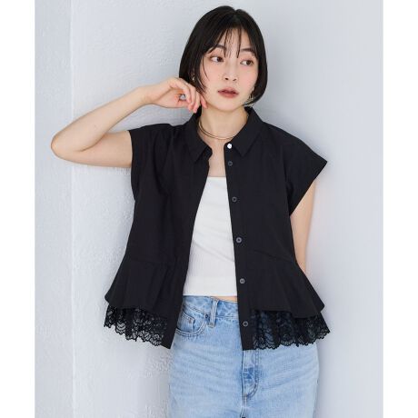 レイヤードレースヘムシャツ