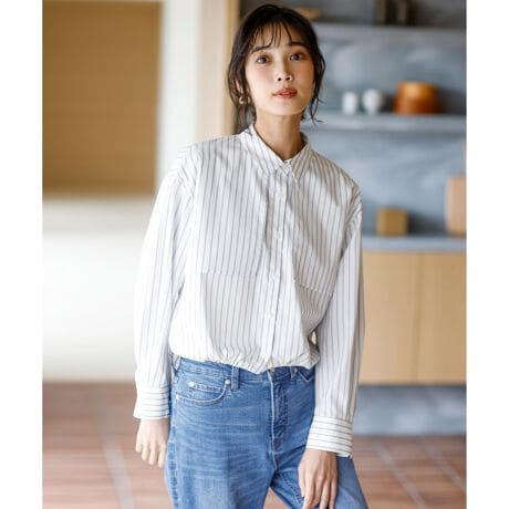 ・インナーにはサテンタンクトップ(KKWPLM0402)、レーストップス(BLWPLM0480)、ロゴT(KKWPLM0404)などがおすすめ・パンツやスカートとも合わせやすく、きちんと感を残したきれいめカジュアルコーデに・TPOやスタイリングに合わせて、襟をきちんと見せたきれいめな着方や、襟を後ろに抜いたラフな着方など、様々な着こなしが楽しめます
