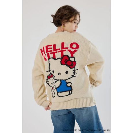 ■ポイント『サンリオキャラクターズ』ハローキティコラボアイテム。風合いのある糸を使用してヴィンテージ感を感じられるカーディガンです。■ディテールフロントにはキティのリボンとメッセージが刺繍で入っており、バックはジャガードでキティとタイニーチャムが表現されている主役級のアイテム。気になる腰回りを隠してくれる丈感です。ビビットでかわいい配色がRODEOらしいアイテムです。■スタイリングティアードスカートなどのレディーライクなアイテムと合わせるのがおすすめです。学生の方は、制服の上に羽織ってもかわいく着こなせます。■生地※ONE&ONLY札付き※ドライクリーニング対応商品ジャガード編み、また毛足の長い糸を使用したニット商品のため、編地や素材の特性上、表面にネップや糸の浮き、毛羽の乱れが生じる場合がございます。着用を重ねることで、毛玉や毛羽立ちが目立ってくることがございますが、素材の特性によるものです。あらかじめご了承ください。ピリングなどが発生した場合は、はさみなどできれいにカットしてください。ボリューム感のあるニット商品ですので、ハンガー掛けの際に襟元などが伸びます。サイズ違いの原因にもなりますので、こまめにハンガーから外すなどご注意下さい。■透け感:なし■裏 地:なし■伸縮性:なし■光沢感:ややあり[注意事項]※画像の商品はサンプルです。実際の商品と仕様、加工が若干異なる場合があります。※画像の商品は光の照射や角度、お使いのモニター環境により、実物と色味が異なる場合がございます。※着用、お取り扱いの際は、アテンションタグをご確認ください。