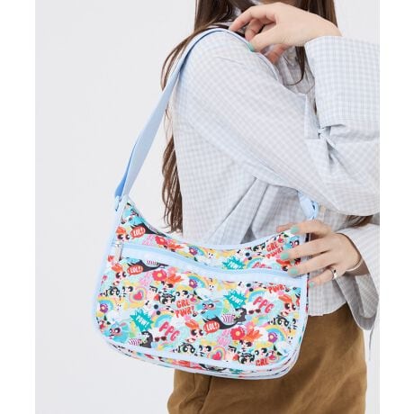 パワーパフ ガールズの世界観を大胆に表現した、エネルギッシュでポップな総柄プリント。ブロッサム、バブルス、バターカップをダイナミックに描き、カラフルなハート、星、雲、コミック風の効果音モチーフを散りばめました。アニメの躍動感をそのまま表現し、持つだけで気分が上がるデザイン。