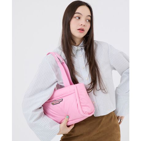 ふんわりとしたパフィー素材が魅力の、可愛らしいスクエア型トートバッグ。