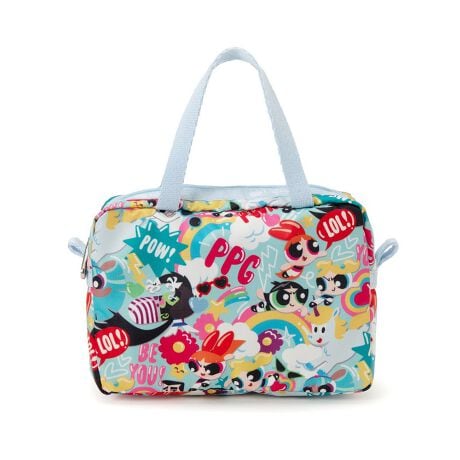 パワーパフ ガールズの世界観を大胆に表現した、エネルギッシュでポップな総柄プリント。ブロッサム、バブルス、バターカップをダイナミックに描き、カラフルなハート、星、雲、コミック風の効果音モチーフを散りばめました。アニメの躍動感をそのまま表現し、持つだけで気分が上がるデザイン。