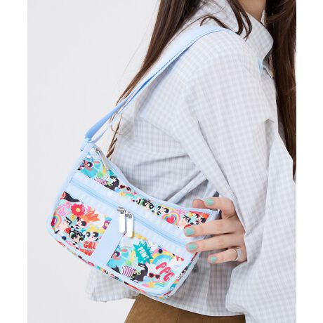 パワーパフ ガールズの世界観を大胆に表現した、エネルギッシュでポップな総柄プリント。ブロッサム、バブルス、バターカップをダイナミックに描き、カラフルなハート、星、雲、コミック風の効果音モチーフを散りばめました。アニメの躍動感をそのまま表現し、持つだけで気分が上がるデザイン。