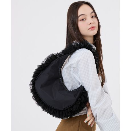 丸みのあるフォルムが可愛らしいハーフムーン型ショルダーバッグ。しっかりとしたマチがあり、長財布や500mlのペットボトルも収納できる頼もしいサイズ感です。身体にやさしく沿うきれいなカーブラインで、肩掛けしやすく持ち心地も◎。