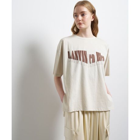 今シーズンのテーマでもある“Summer Paradise”のロゴを“LANVIN en Bleu”のロゴとレイヤーしてプリントし、ヴィンテージ風な色合いにまとめたロゴTシャツ。