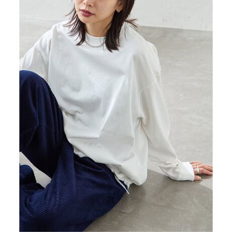 インナーにも1枚着としても活用できる程よい厚さで透けにくいのが嬉しいロングTシャツ。