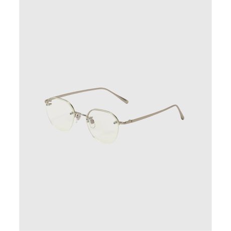 NO EYEDYAでは、そのクラウンパントをブラッシュアップさせたツーポイントリムレスのクラウンパントを作成しました。ツーポイントフレームとは、レンズに穴をあけ、ネジで止める構造になっています。レンズを囲む縁が無く、最も素顔に近い印象を生むシェイプの為、極力ミニマムにデザインしたモデルの伊達メガネです。