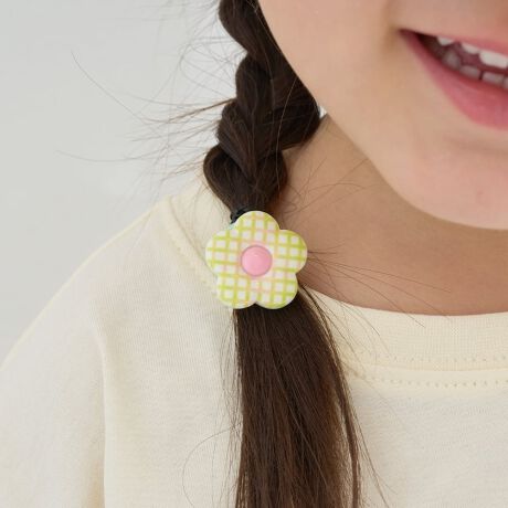 ・チェック柄のフラワーモチーフがかわいいヘアゴム2コセット