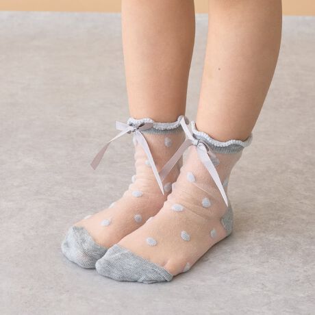 ・シアー素材のクルー丈ソックスで足元に透け感をプラス