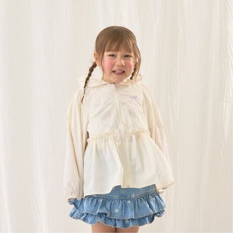 ・フリル付きフード&ウエスト切り替えでフェミニンな印象