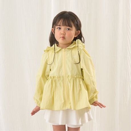 ・フリル付きフード&ウエスト切り替えでフェミニンな印象