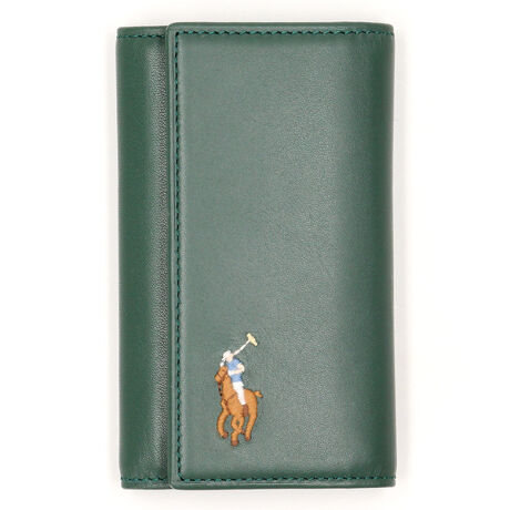 POLO RALPH LAUREN Multi Color Ponyシリーズのキーケース。質感の良いカーフレザーを天然ワックスを使用しアニリン仕上げをすることでソフト感のある素材に仕上げました。シグネチャーのポニーをマルチカラー刺?であしらいアクセントを添え世界観を広げました。グリーンはWEB限定カラーになります。 (機能・収納)キーレーン×5 大リング×1 スリット×3