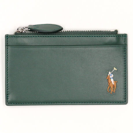 POLO RALPH LAUREN Multi Color Ponyシリーズのフラグメントケース。質感の良いカーフレザーを天然ワックスを使用しアニリン仕上げをすることでソフト感のある素材に仕上げました。シグネチャーのポニーをマルチカラー刺?であしらいアクセントを添え世界観を広げました。グリーンはWEB限定カラーになります。 (機能・収納)カード段5 ファスナー小銭入 スリット×1