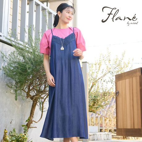 マルイウェブチャネル   /   ミゼール   /   ワンピースドレス   /   その他ワンピース   /   【洗える・体型カバー・M〜3Lサイズ】レーストリムキャミワンピース(ネイビー)
