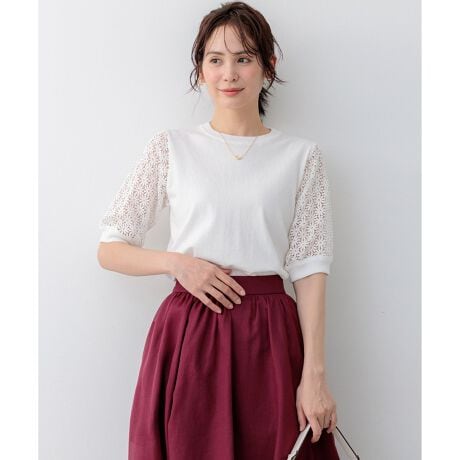 オリジナルレースをあしらった大人フェミニンなプルオーバーニット