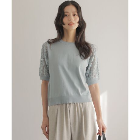 オリジナルレースをあしらった大人フェミニンなプルオーバーニット