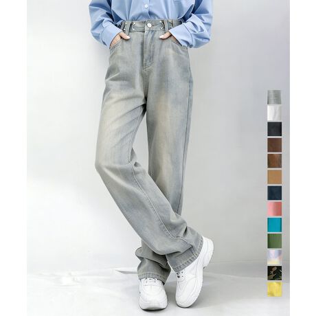 ウエストフックデニムパンツワイドジーンズ