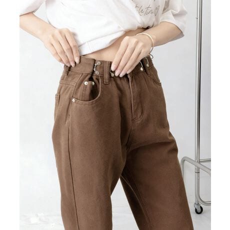 ウエストフックデニムパンツワイドジーンズ