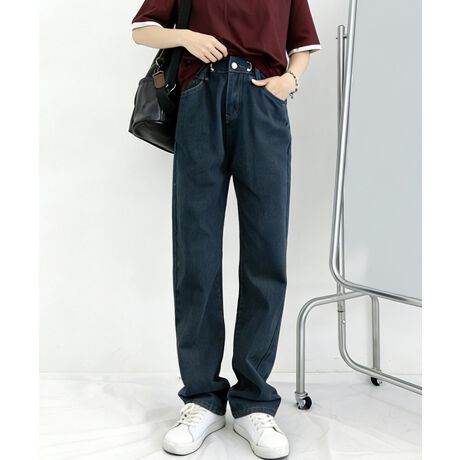 ウエストフックデニムパンツワイドジーンズ