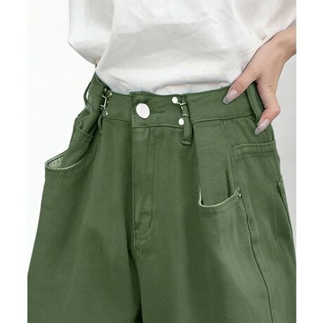 ウエストフックデニムパンツワイドジーンズ