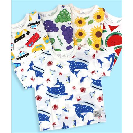[型番:11343100]夏の大人気シリーズ!オリジナル総柄がインパクト大で写真映えバツグンです。男女問わず兄妹コーデ出来るキュートな柄です。ベビーサイズは肩開き仕様です。