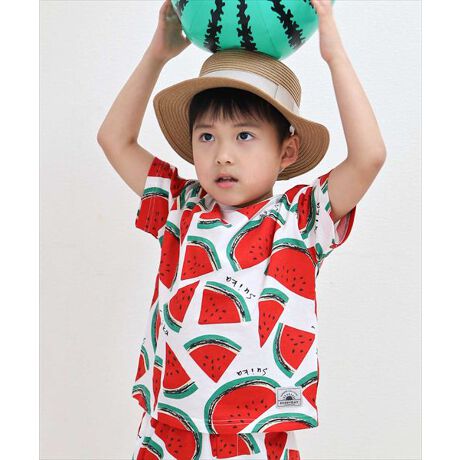 夏の大人気シリーズ!オリジナル総柄がインパクト大で写真映えバツグンです。男女問わず兄妹コーデ出来るキュートな柄です。ベビーサイズは肩開き仕様です。