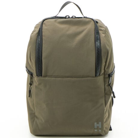 [型番:HPL5187]ナイロン製のソフトバックパック。軽量かつ耐久性に優れています。 容量13Lで収納力もあり、A4が入るサイズ感です。メイン収納部分のファスナーはガバっと大きく開くことが出来るので、収納アイテムの出し入れがしやすい。ファスナーの引手に紐が付いているので、開閉がスムーズです。内装にはPCポケットやファスナーメッシュポケットが付いています。バックパック両サイドにもファスナーポケットが付いているので、小物の収納に便利。