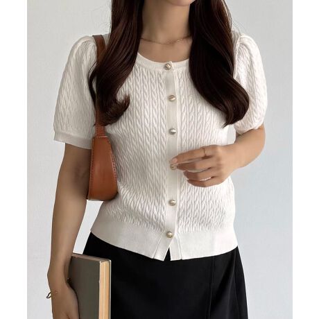 callautia 金ボタンケーブル半袖ニットカーディガン
