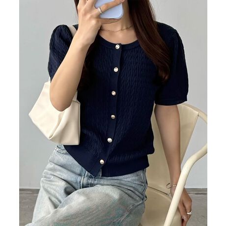 callautia 金ボタンケーブル半袖ニットカーディガン