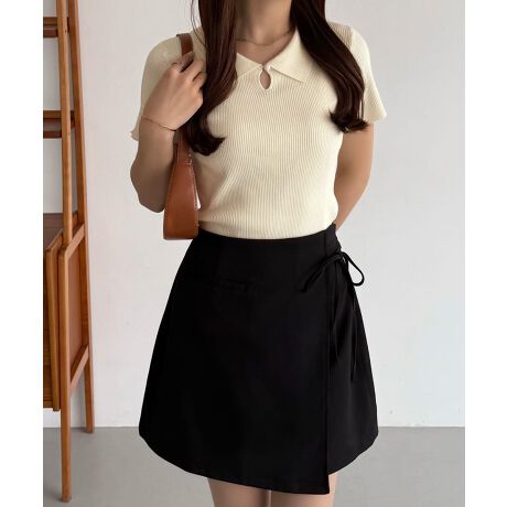 callautia フロントスリットポロニットトップス
