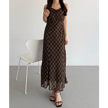 callautia シアーチェックマーメイドキャミワンピース