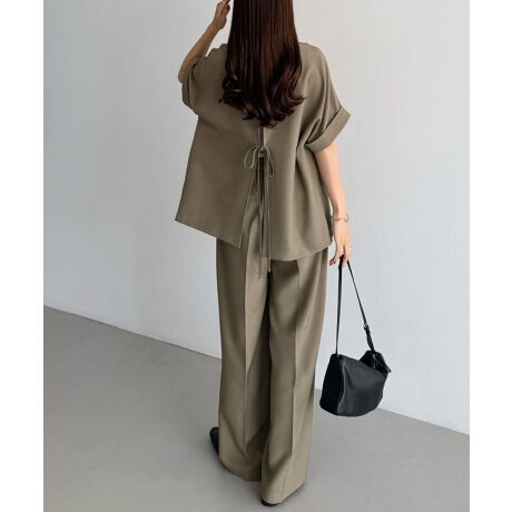 callautia リネンライク半袖ジャケット+タックスラックスパンツset