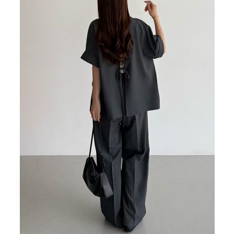 callautia リネンライク半袖ジャケット+タックスラックスパンツset