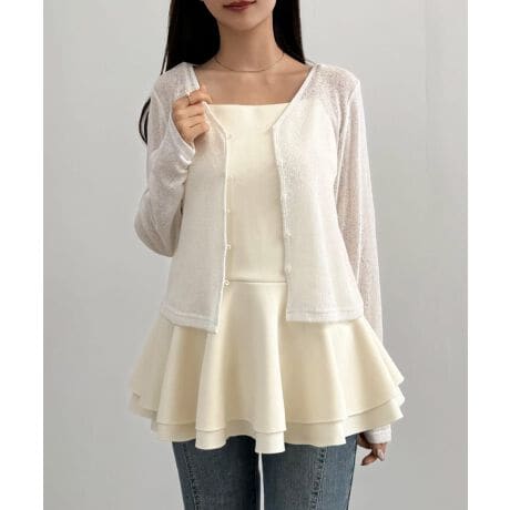 CENEA カットオフペプラムキャミソール+シアーカットカーデSET