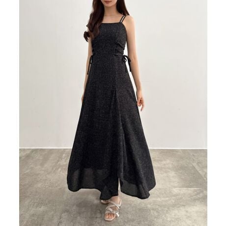CENEA 薄手ツイードレースアップラッフルキャミワンピース