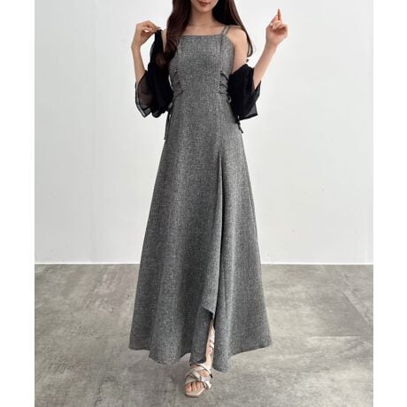 CENEA 薄手ツイードレースアップラッフルキャミワンピース