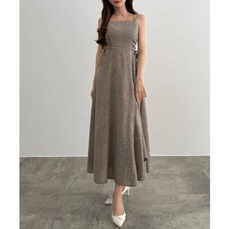 CENEA 薄手ツイードレースアップラッフルキャミワンピース