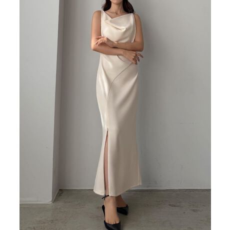 Louere ドレープ前ファスナースリットキャミワンピース【一部ぺチスカートセット】