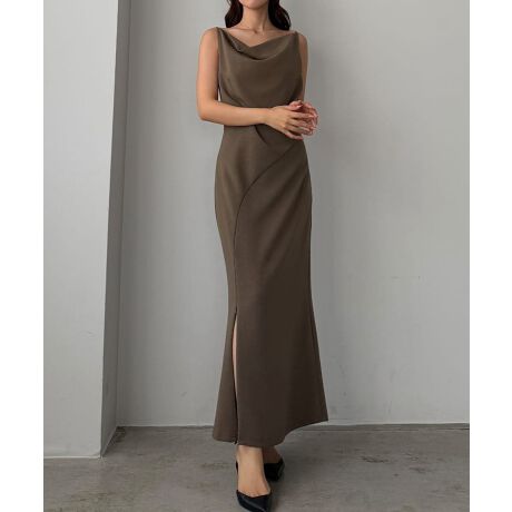 Louere ドレープ前ファスナースリットキャミワンピース【一部ぺチスカートセット】
