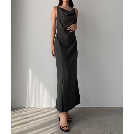 Louere ドレープ前ファスナースリットキャミワンピース【一部ぺチスカートセット】