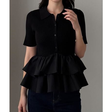 Louere フリルドッキングニットトップス