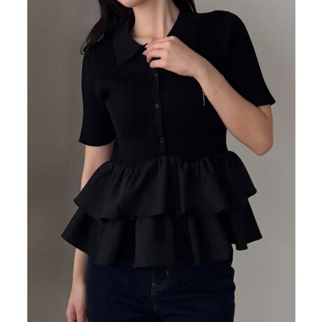 Louere フリルドッキングニットトップス